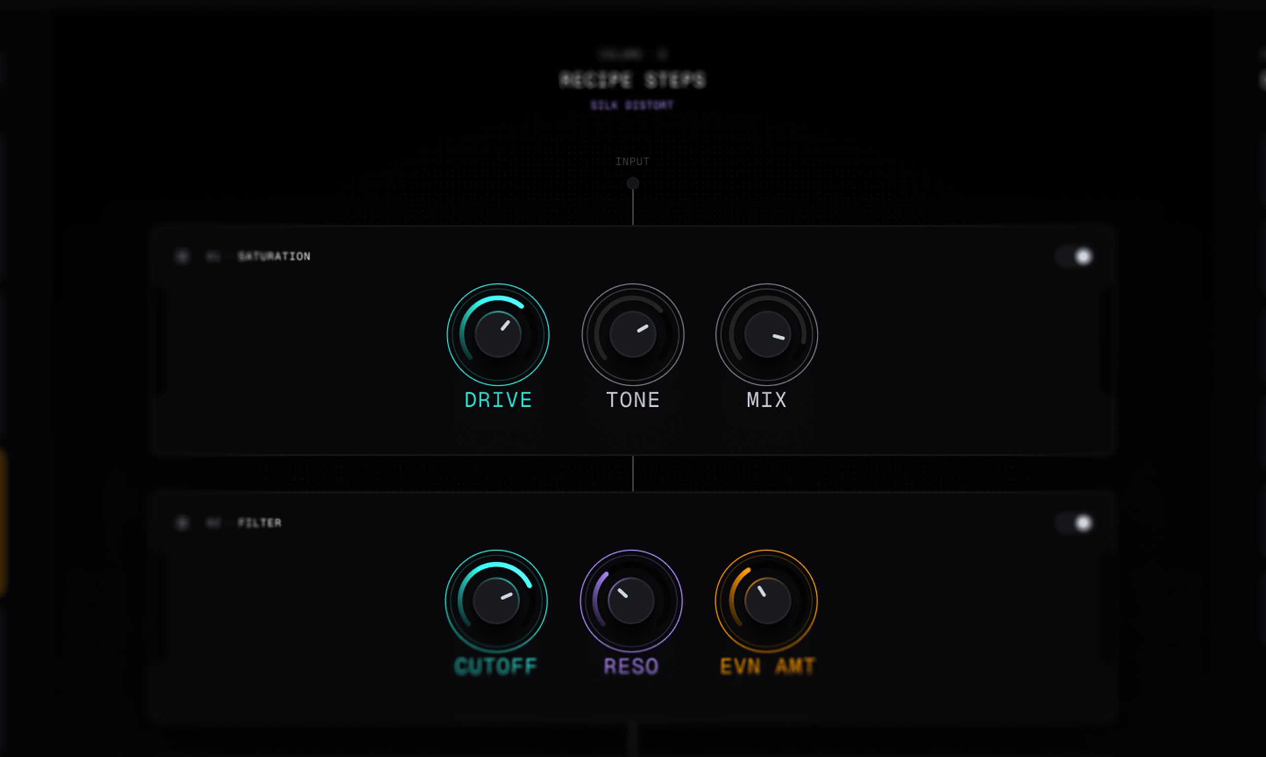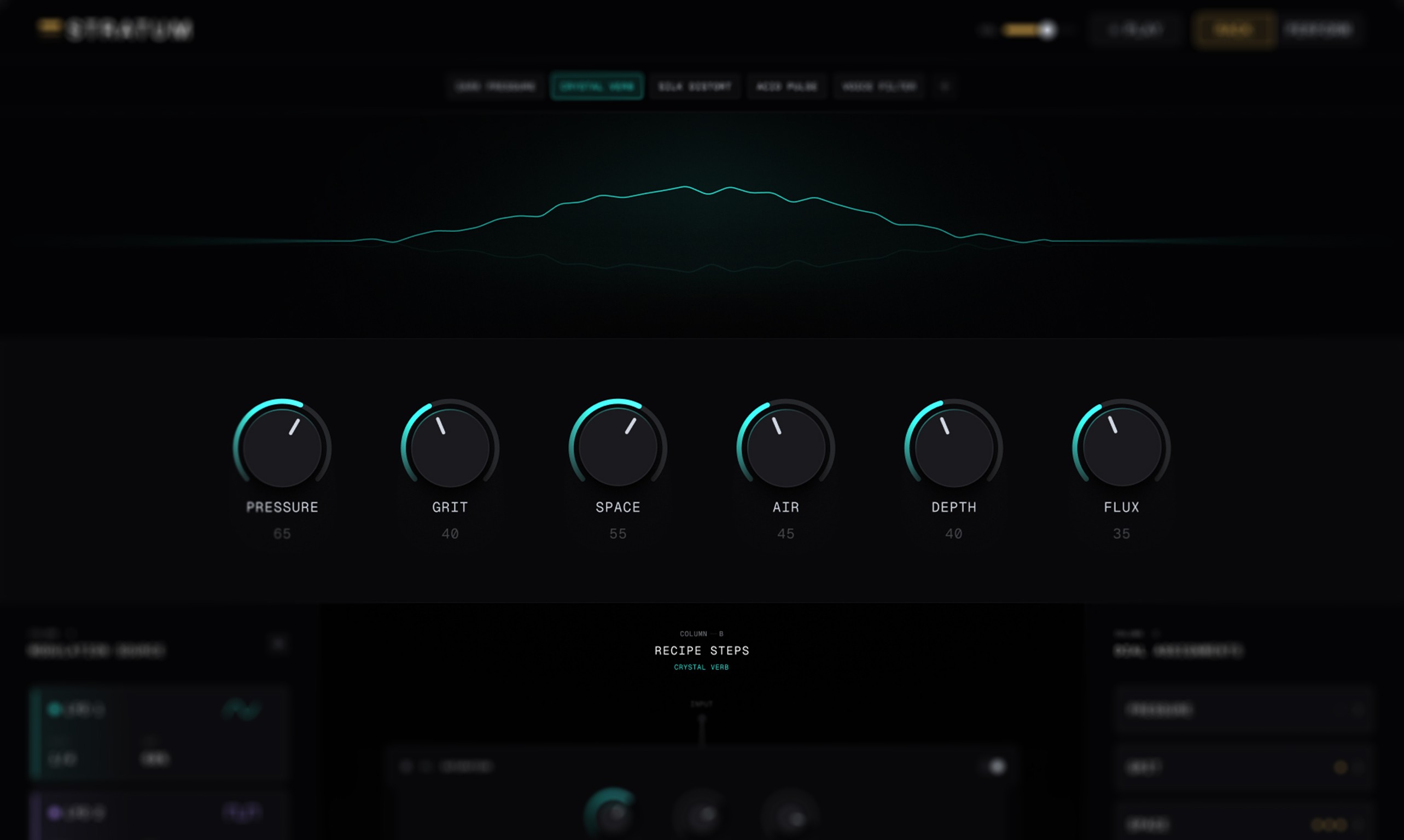 Recipes, not patches. Presets in most tools are static snapshots. Stratum's recipes are named, coloured, switchable signal chains each with its own steps, modulators, and macro assignments. Switching recipe is switching instrument.